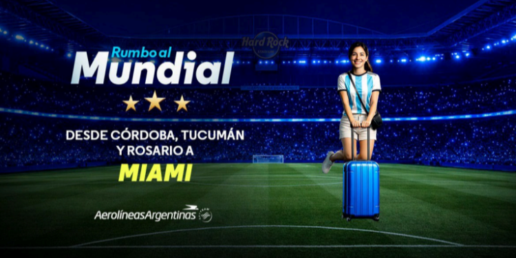 Aerolíneas Argentinas anuncia el lanzamiento de nuevos vuelos internacionales desde el interior del país con motivo del próximo Mundial de Fútbol, que conectarán a las ciudades de Córdoba, Rosario y Tucumán con Miami a partir del 8 de junio.Los servicios operarán con una escala técnica en Punta Cana, con las siguientes frecuencias: desde Córdoba, dos vuelos semanales los lunes y miércoles; desde Rosario, tres frecuencias semanales los martes, viernes y domingos; y desde Tucumán, dos vuelos semanales los jueves y sábados.
