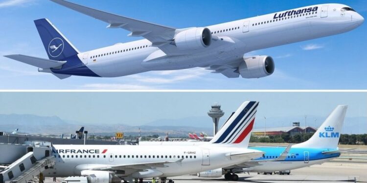 Air France-KLM y Lufthansa ‘vuelan’ en bolsa este jueves, tras dar a conocer sus resultados de 2024. La cotización del grupo aéreo franco-neerlandés se dispara más de un 22% y la del alemán sube más de un 8%, tras lograr más ingresos y beneficio. Eso sí, este último es el mejor posicionado para entrar en el capital de Air Europa, después de que el pasado verano IAG rechazara comprarla.