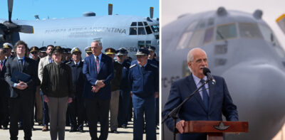 Javier Milei presentó en un acto el mismo avión Hércules que había donado Estados Unidos ...