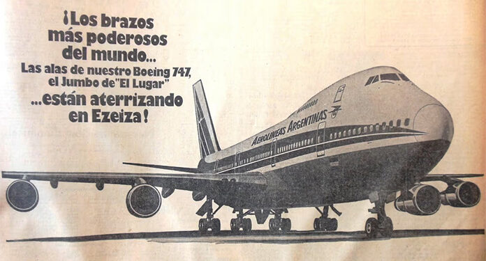 Era la tarde de un viernes de verano y el calendario marcaba el 7 de enero de 1977. En la plataforma del Aeropuerto Internacional de Ezeiza, la silueta inconfundible de una aeronave dominaba el paisaje, volviendo pequeños a los Boeing 707 que hasta entonces habían sido los reyes de la flota. Hace exactamente 49 años, Aerolíneas Argentinas concretaba su ingreso definitivo a la era del fuselaje ancho (WideBody) con el primer vuelo comercial de su nuevo Boeing 747-287B, matriculado LV-LZD.