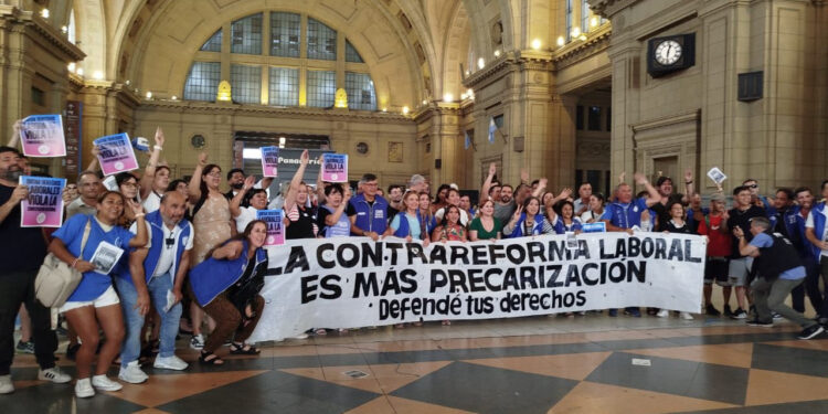 La Confederación General del Trabajo (CGT) llevó adelante una acción callejera en Plaza Constitución para visibilizar su rechazo a la reforma laboral impulsada por el Gobierno y alertar sobre el impacto que, según advierten, tendría sobre los derechos de las y los trabajadores. La iniciativa fue convocada por la Secretaría de Género de la central sindical como el inicio de una campaña pública de difusión en distintas estaciones de trenes y en plazas del AMBA.